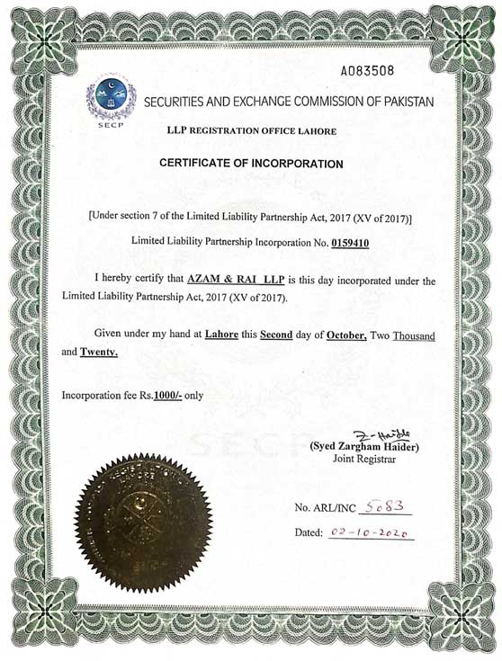 INCORPORATION CERTIFICATE